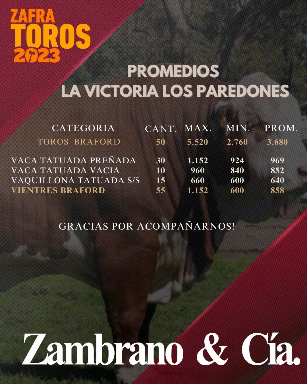 Por la compra de 5 o más toros de ambas cabañas: 5% de descuento adicional.