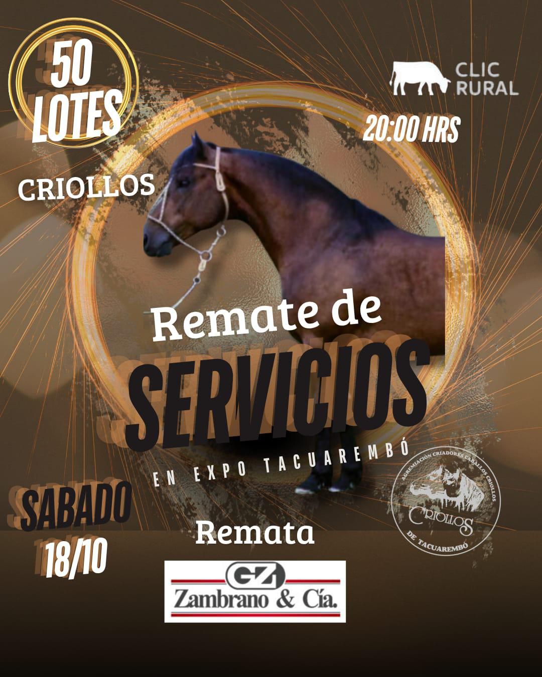 Remate a beneficio de la Agremiación de criadores de caballos criollos de Tacuarembo para el armado de 1 pista para realizar pruebas en la Rural de Tacuarembo. Sábado 18 de octubre